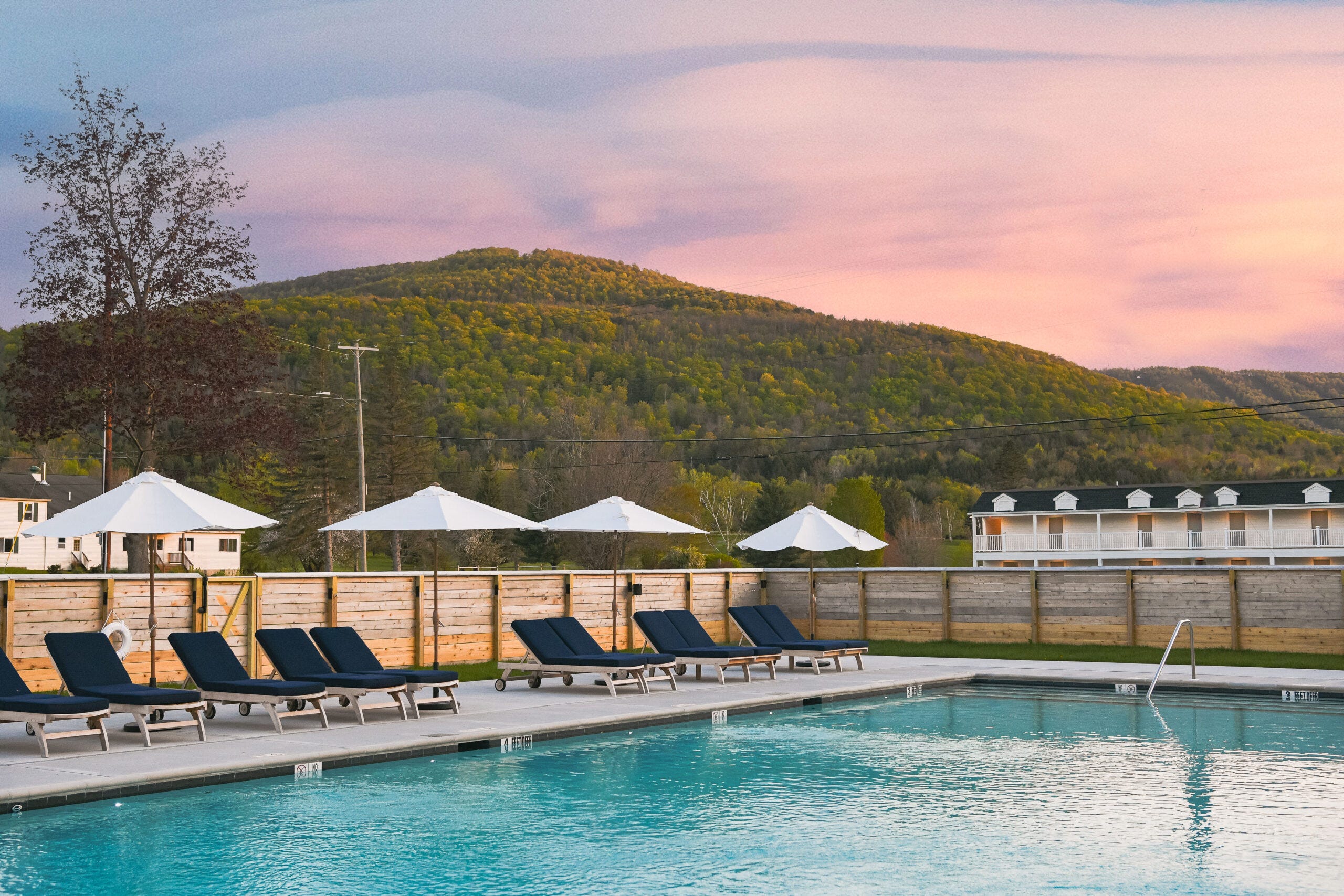Not only do these hotels have refreshing pools with beautiful Upstate views – they also include features like poolside bars, cold plunges, and saunas. (Also worth mentioning: it’s generally ~10º cooler in the Catskills than NYC.)