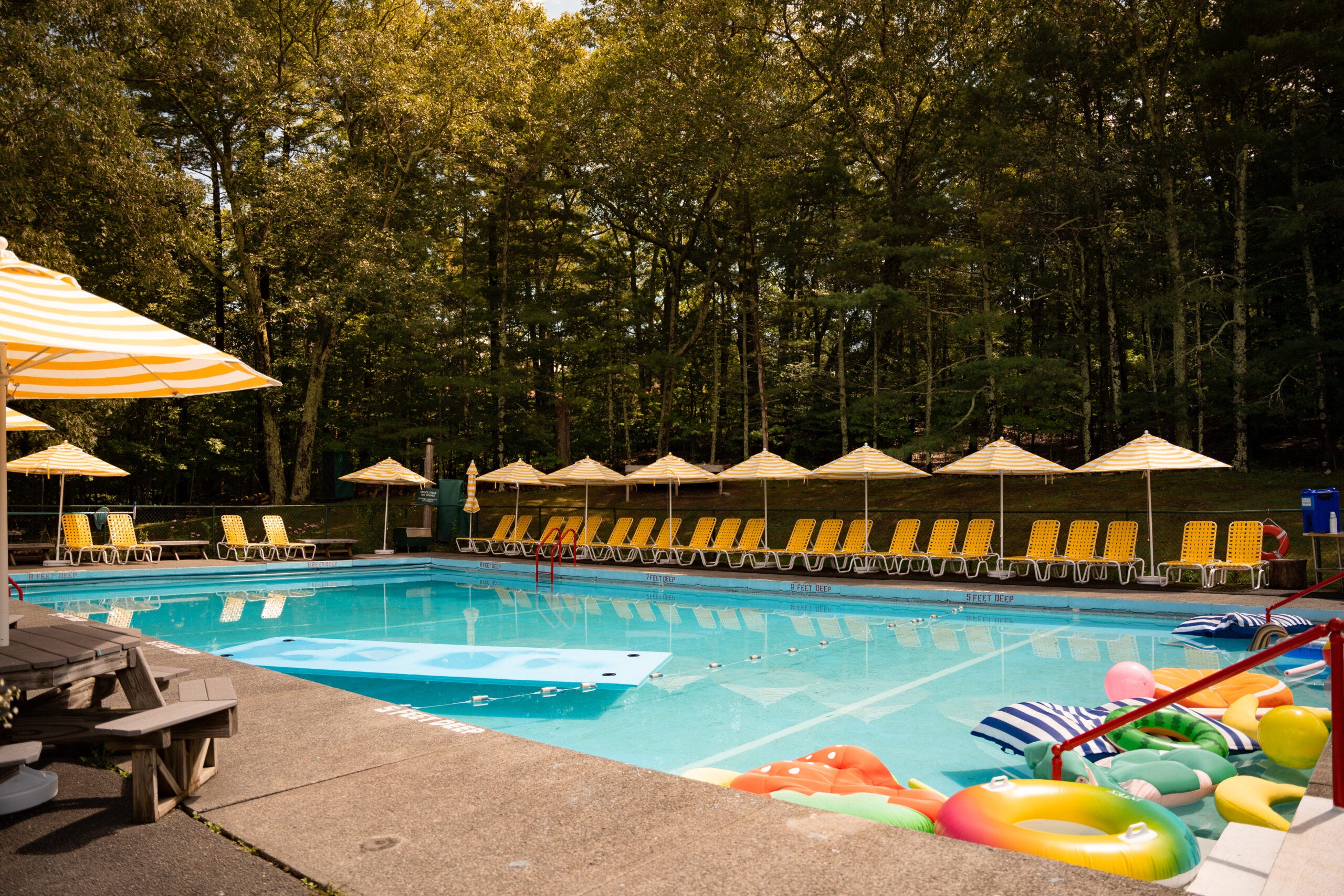 This newbie on the upstate pool list is an old favorite. Arnold House, a boutique hotel, spa and event space that opened in 2014, was an early pioneer in restoring the Catskills back to its rightful place as the resort mecca it’s famous for. The pool addition includes a small pool bar, concrete patio and adult sand box along with yellow and white striped umbrellas and red and white lounge chairs for that vintage upstate vibe. Soak up the sun on a colorful floaty or enjoy a refreshing dip with friends and family.