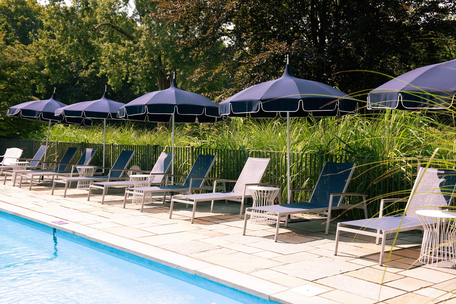 Located in the hamlet of Stone Ridge in the Hudson Valley, Hasbrouck House combines historic sensibility with modern, rustic charm. Centered around an 18th century Dutch Colonial stone mansion, the grounds at Hasbrouck House include Butterfield restaurant, bocce courts, an outdoor cafe and movie theater, trails to the private lake, and of course, the pool. At over 100 years old, this landmark swim spot is just far enough away from the mansion to give you that privacy you’re seeking.